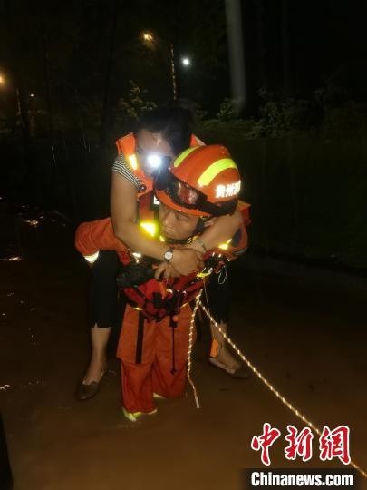 图为消防员转移被困人员。 贵阳市消防救援支队供图