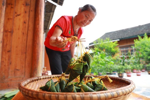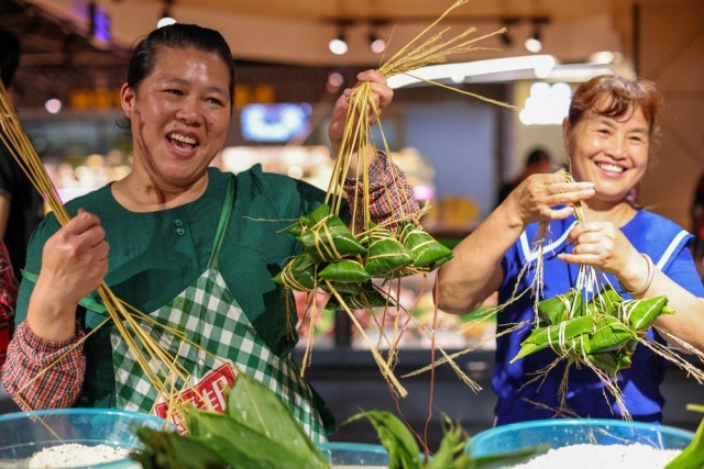 宋人欧阳修的《渔家傲》描绘出端午佳节的热闹景象,“五色新丝缠角粽”,包粽子是我国重要的端午习俗。人们包粽子、迎佳节,神州处处飘粽香。