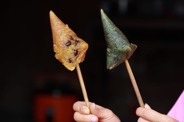 6月15日在贵州省黔东南苗族侗族自治州台江县排羊乡的一处粽子生产车间里拍摄的五彩粽子。新华社发(邰春 摄)