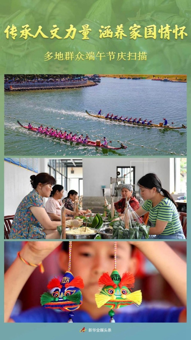 端午节是我国重要的传统节日,有着悠久的历史传承、深厚的文化底蕴。在这个节日里,五湖四海的人们划龙舟、包粽子、挂菖蒲、插艾蒿,或是参加古籍阅读、文艺活动、旅游宿营……以传统或时尚的方式,追思爱国先贤,传承人文力量,涵养家国情怀,展现民族文化自信。