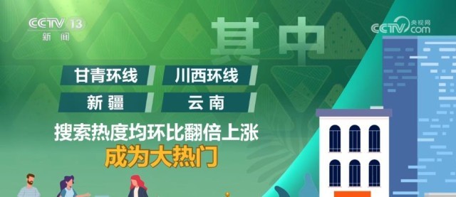 旅游预订平台数据显示,端午假期三天,酒店、民宿、景点等预订量比2019年端午期间增长近一倍。其中,甘青环线、川西环线、新疆、云南的搜索热度均环比翻倍上涨,成为大热门。
