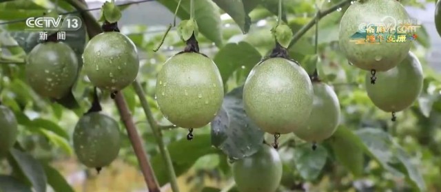 央视网消息:绿油油的藤蔓爬满棚架,黄澄澄的果实芳香扑鼻。在江西赣州寻乌县,眼前这一处2000多亩连片种植的百香果,给大山披上了绿衣。枝叶繁茂、硕果累累,一个个百香果硕大饱满,果农穿梭田间、忙碌不停。