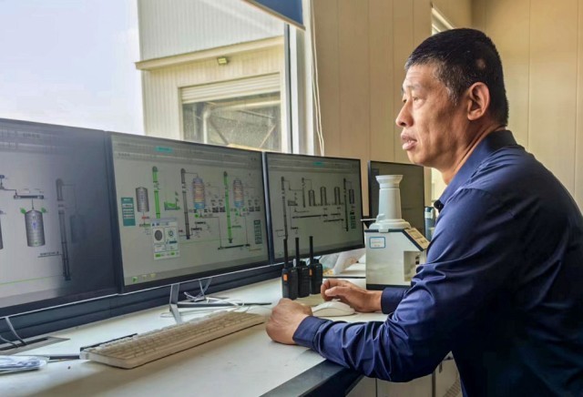 6月13日,在山东省齐河县晏城街道粮食烘干仓储服务中心,工作人员监测粮食烘干塔运行情况。新华社记者 陈灏 摄