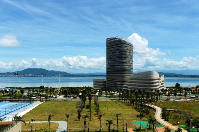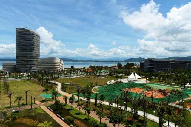 在海南省陵水黎族自治县新村潟湖湖畔,比邻清水湾、南湾猴岛的黎安半岛上,一座大学群园区崭新亮相,中国传媒大学、电子科技大学、北京邮电大学等国内高校联合境外高校举办的中外合作办学机构正在或即将在此办学。学生不出国门便可接受国际教育,“留学海南”为国内学子提供了一项新选择。