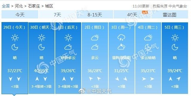预计明天,京津冀仍有大范围的高温天气,北京、石家庄再战高温,石家庄或挑战40℃。如果高温连续实现,上述两个地方或将打破当地单月高温日数最多纪录。公众需尽量在避免午后气温较高时段出行,减少户外逗留时间,如出现头晕、恶心等中暑前兆症状,及时转移至通风阴凉处。