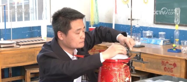 从数学老师调整到科学老师,张老师变得很忙。他要保证给孩子们上齐课程表上规定的科学课课时,同时他要上网学习更多的科学实验课程,还要动手制作方便乡村孩子们接触的实验道具。