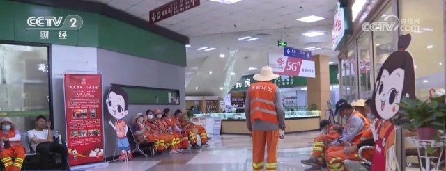 在北京朝阳区驼房营路,因周边小区、商场、超市较为集中,这里平日里聚集着不少快递员、外卖员,以及环卫工人。记者看到,不少外卖员送完午餐纷纷来到了一家商场门口,领取免费的矿泉水和绿豆汤。