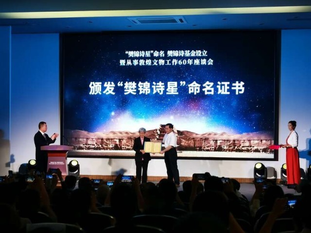 中国青年报客户端敦煌7月10日电(中青报·中青网记者 马富春)7月10日上午,樊锦诗从事敦煌文物工作60年座谈会在敦煌举行。会上正式命名了编号381323小行星为樊锦诗星。