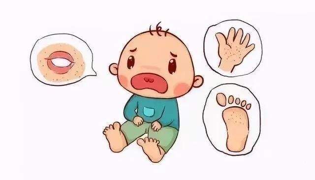 在发病早期,患者常表现为低热、疲倦、食欲下降、身体不适、腹痛等前驱症状。发热1~2天后可在口腔黏膜出现散在疼痛性粟粒大小般的水泡,手、足、臀部等处出现红色小斑丘疹或疱疹。部分病例仅表现为皮疹或疱疹性咽峡炎,个别病例或无皮疹。