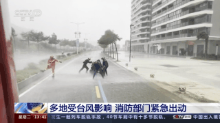 广东阳江:市民骑摩托被台风刮倒 消防出手救援