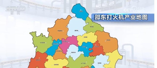 在这张最新编制的邵东打火机产业地图上,记者看到,10个乡镇承担了打火机产业链上的不同产业配套环节,形成了国际市场高端机、内销机、设计研发、包装印刷等产业集群。