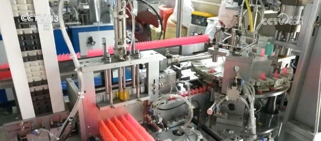 这家企业是第一批入驻产业园的企业,目前日产打火机150万只。记者发现,这里的每道生产工序中都能看到自动化设备的身影。在质检环节,厂家正在用机器视觉技术给打火机“做体检”,看火苗高度是否符合出厂要求。