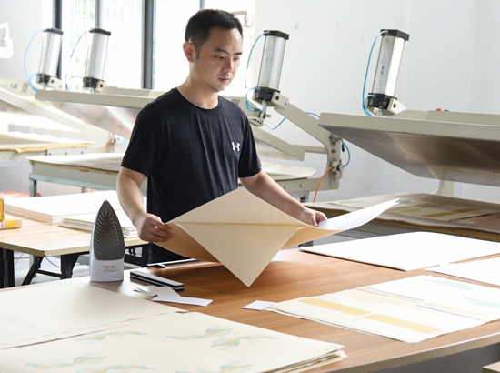 到了晒纸环节,冬天待在钢结构的晒纸楼房里,脱下厚厚的外衣,倍感惬意。但到了夏天,工人将纸张晒在铁板上,通过热水传热将纸张烘干,李超形容,就像“在桑拿房里”。