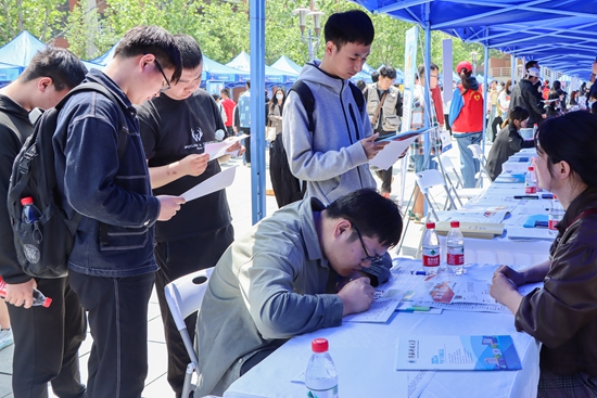 5月8日,陕西共青团校地联合促进大学生就业“梧桐工程”暨“创青春,致宝鸡”——我与青年发展型城市双向奔赴陕西高校宝鸡专场招聘活动在陕西科技大学举办。陕西科技大学供图