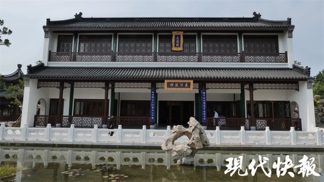 记者在现场看到,复建的文汇阁主体建筑尊重历史原貌,仿照天一阁建筑规制,面阔六间,明二暗三,硬山筒瓦。走进文汇阁,一楼主要是文汇阁历史文化展陈区域。大厅正中,摆放了一张抄书桌,当年读书人可以在此借书、抄书。书桌上方有一块写着“大观天下”的匾额,据工作人员介绍,当年天宁寺行宫御花园的正殿叫做“大观堂”,文汇阁就建在大观堂旁边,“大观天下”寓意读书可以开阔眼界、胸怀古今、放眼天下。