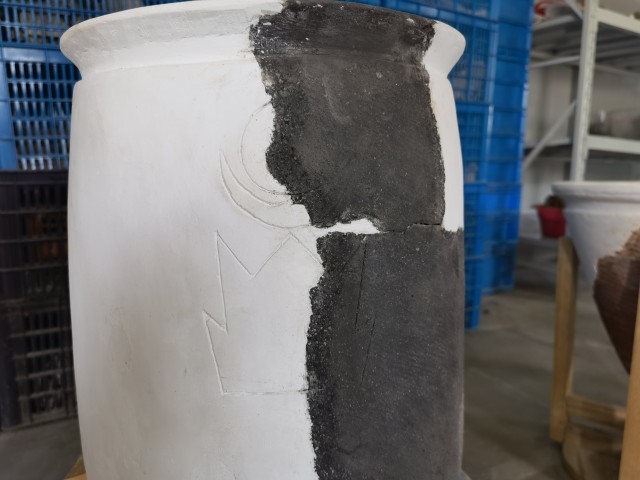 寺墩还出土了6件漆彩陶壶,其中的一件陶壶纹饰繁复、构图精巧,非常具有设计感,由黑、黄、红三色构成,均为矿物颜料。“在整个环太湖流域,很少出土如此精致的器物,可以说是一件珍贵的艺术品。”