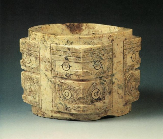 寺墩遗址中,常见高节琮,兽面纹刻划较细腻。南京航空航天大学人文与社会科学学院教授车广锦曾撰文推想,寺墩遗址的布局本身就取像于玉琮。遗址中间的寺墩墩体好似玉琮的穿孔,是先民用来沟通天地的祭台,内河外的四处高地好像玉琮的四个角,其中安葬的是“寺墩王国”的统治者阶层。