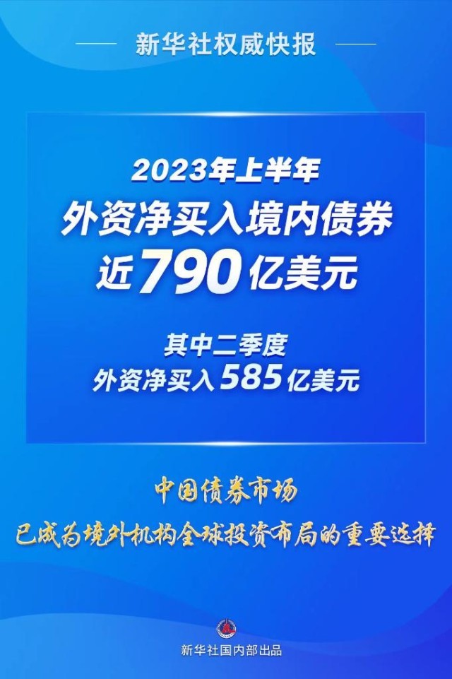 2023年上半年外资净买入境内债券近790亿美元