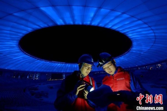国网四川电力工人在东安湖体育公园主体育场开展场馆末端负荷溯源工作。陈翔摄