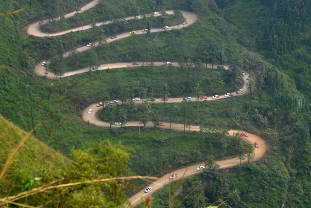 赛车集结在贵州省晴隆县“二十四道拐”(资料照片)。新华社发(陈亚林 摄)