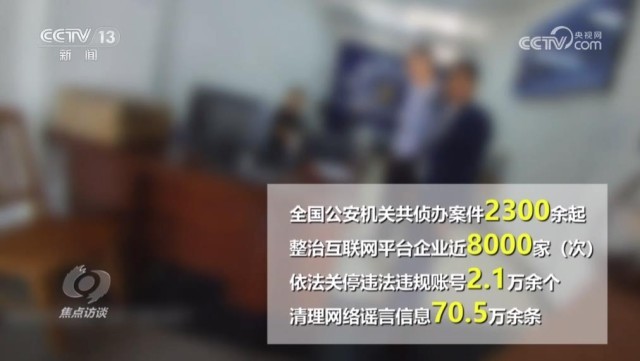 今年4月以来,公安部网安局部署开展为期100天的网络谣言打击整治专项行动,全国公安机关共侦办案件2300余起,整治互联网平台企业近8000家(次),依法关停违法违规账号2.1万余个,清理网络谣言信息70.5万余条,对网络谣言违法犯罪形成强大震慑。