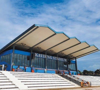在巴布亚新几内亚新爱尔兰省省会卡维恩市,中国铁建股份有限公司承建的卡维恩体育场是当地首座现代化体育场。吴 彪摄
