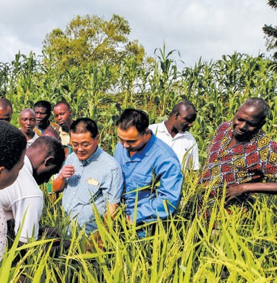 中国中化控股有限责任公司旗下荃银高科的水稻专家在多哥示范田现场,为当地农民讲解水稻抽穗扬花期的关键技术和田间管理要点。王家保摄