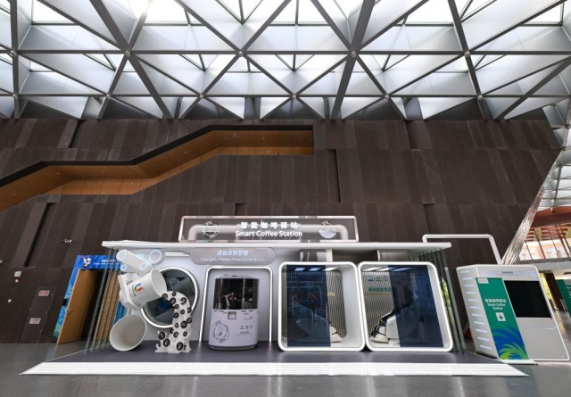 ↑这是7月15日拍摄的大运村内的智能咖啡驿站。新华社记者 王曦 摄