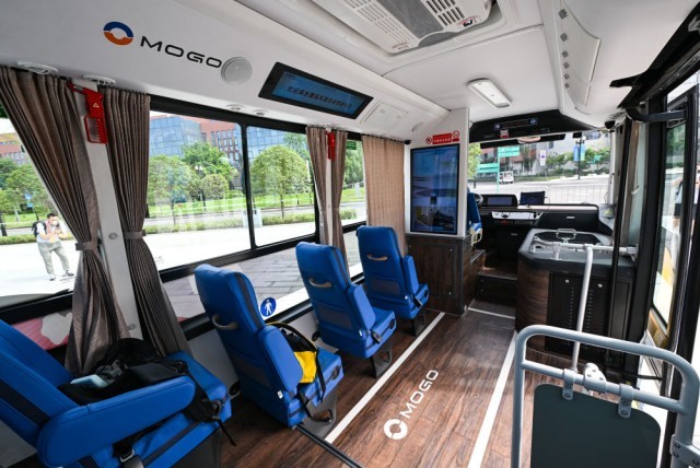 ↑这是7月15日拍摄的大运村自动驾驶巴士内部。 新华社记者 王曦 摄