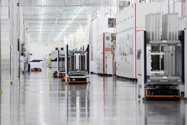 ↑6月21日,在通威太阳能成都双流生产基地太阳能电池片智能智造车间,机器人在穿梭转运。 第31届世界大学生夏季运动会即将在成都举行,成都以举办大运会为契机,促进科技成果转化落地,推动科技赋能大运会赛事。 新华社记者 江宏景 摄