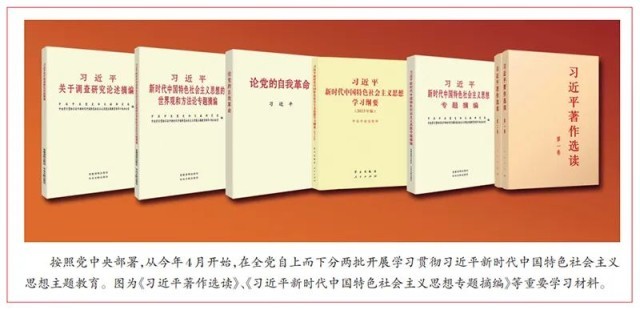 在全党深入开展学习贯彻习近平新时代中国特色社会主义思想主题教育,是深入推进新时代党的建设新的伟大工程的重大部署。习近平新时代中国特色社会主义思想直面新时代管党治党新形势新任务,给出了自我革命这一跳出治乱兴衰历史周期率的第二个答案,为全党时刻保持清醒和坚定、解决大党独有难题指明了行动方向、提供了根本遵循。要坚持不懈用习近平新时代中国特色社会主义思想凝心铸魂,教育引导各级党组织和广大党员干部突出问题导向,查不足、找差距、明方向,接受政治体检,打扫政治灰尘,纠正行为偏差,解决突出问题,不断增强党的自我净化、自我完善、自我革新、自我提高能力,使我们党始终充满蓬勃生机和旺盛活力,始终成为中国特色社会主义事业的坚强领导核心。