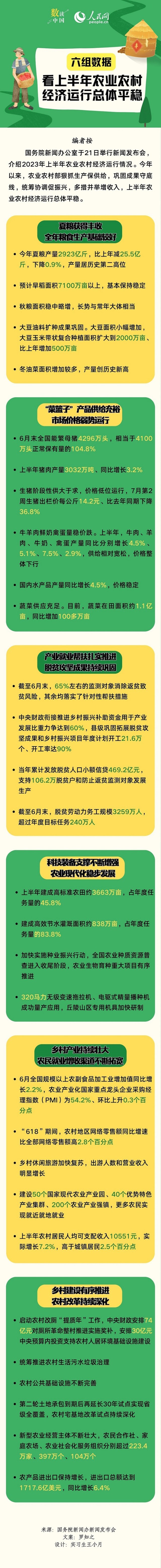 数读中国 | 六组数据看上半年农业农村经济运行总体平稳