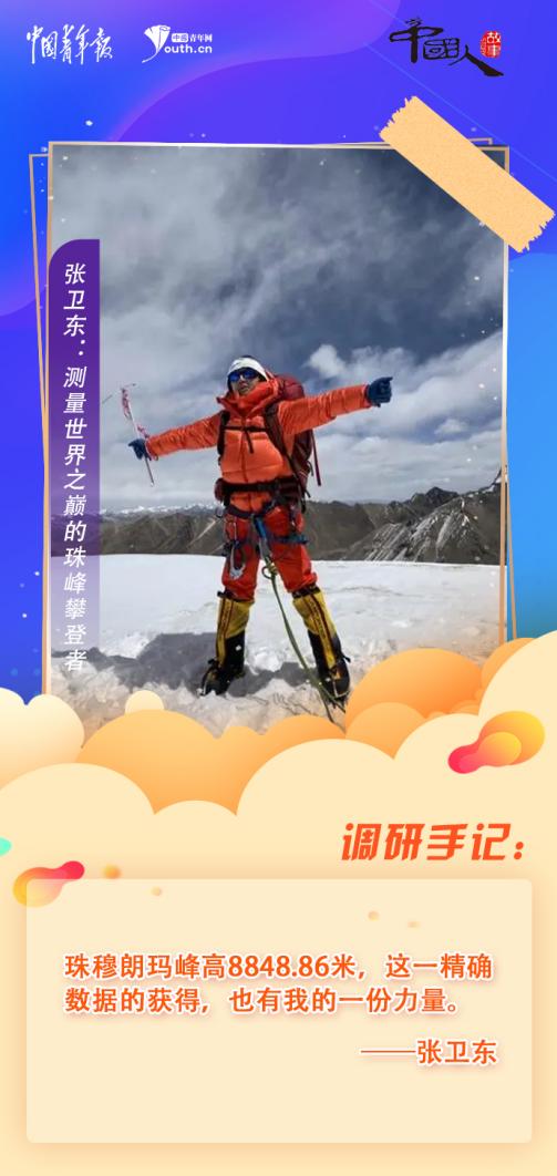“珠穆朗玛峰高8848.86米,这一精确数据的获得,也有我的一份力量。”说起2020年珠峰高程测量,张卫东总是很自豪,他说,“这是我的青春非常值得骄傲的一件事情。”