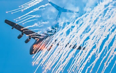 运油—20释放红外干扰弹。谭巳成摄(新华社发)