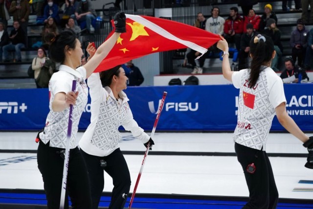 2023年1月22日,在美国普莱西德湖举行的世界大学生冬季运动会女子冰壶决赛中,中国队以6:4战胜韩国队,夺得金牌。新华社发