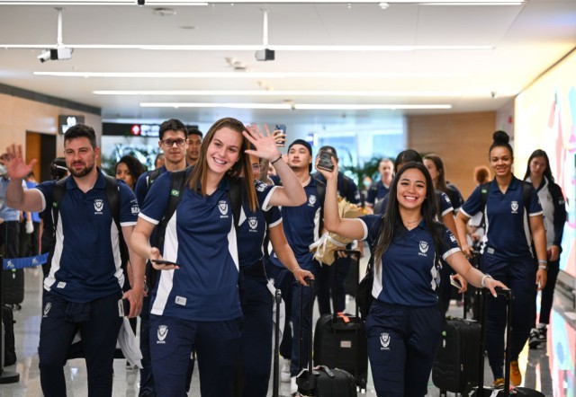 7月21日,巴西代表团运动员抵达成都天府国际机场。新华社记者 王曦 摄