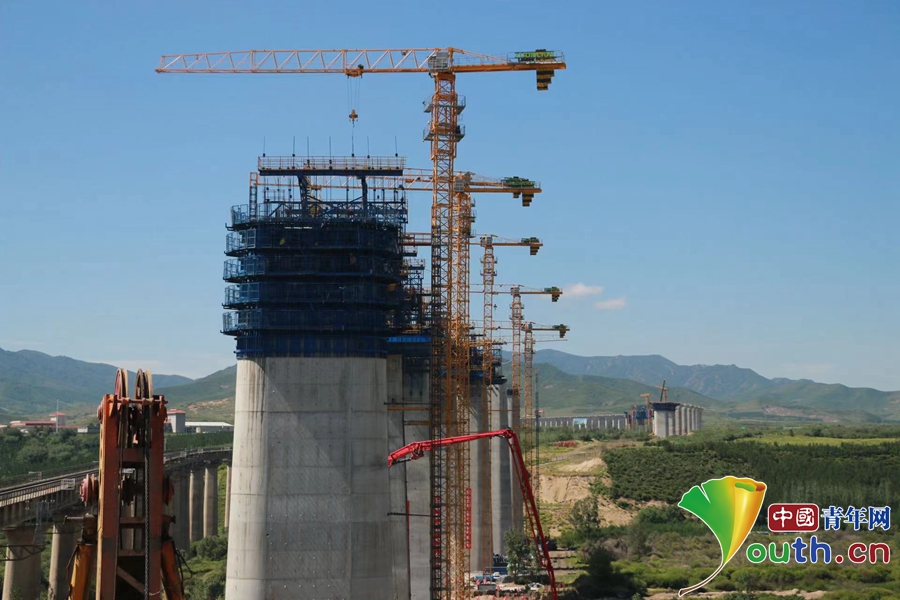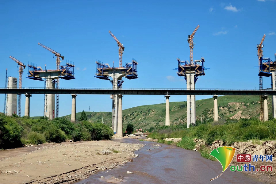 多伦河特大桥正在施工。中国青年网记者朱浩天 摄