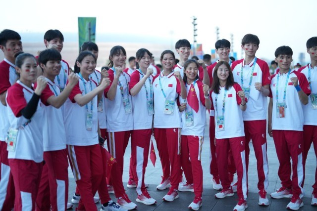 “雄起”成为当天中国代表团许多队伍的合影口号