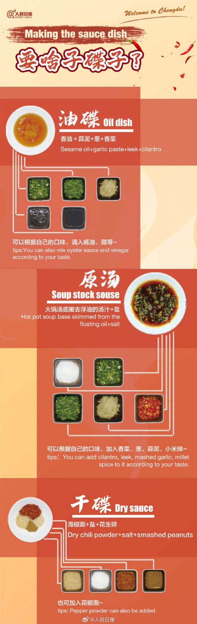 Welcome to Chengdu! 来成都耍,火锅必须整起。牛油锅还是鸳鸯锅?微辣、中辣、特辣,想挑战哪个?到了四川,调蘸碟是不是该整个油碟?毛肚、鸭肠、黄喉儿……已经在流口水了!来自成都的火锅涮烫双语指南↓↓速速收藏!