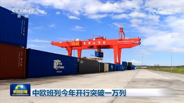 央视网消息(新闻联播):今年以来,我国外贸保持稳中向好态势,跨境货物运输需求旺盛,中欧班列累计开行已突破1万列,有力保障了国际产业链供应链安全稳定。