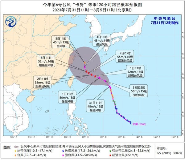 “卡努”加强为强台风 8月2日夜间将移入东海