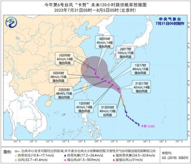 台风“卡努”最强可达强台风 8月2日夜间将移入东海
