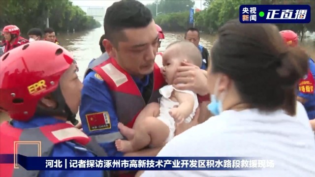 就在8月2日,由于附近河流水位上涨,涿州市高新技术产业开发区出现大面积的积水,救援人员紧急打通救援通道,驾驶冲锋舟一趟又一趟转移被困群众。