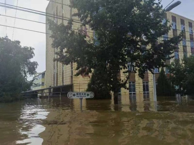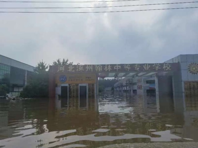 8月2日,阳光大街上一所职业院校被淹。中青报·中青网记者朱洪园/摄