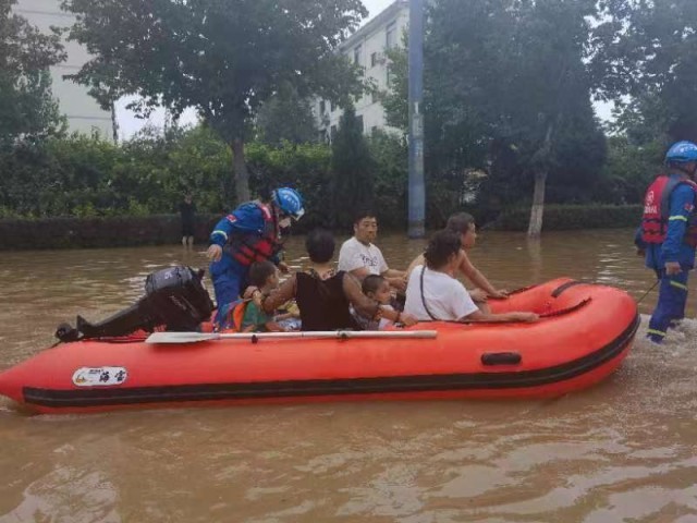 “我们带了矿泉水、方便面、火腿肠等生活物资,还有抢险舟、橡皮舟。”来自唐山的一名救援队员说。