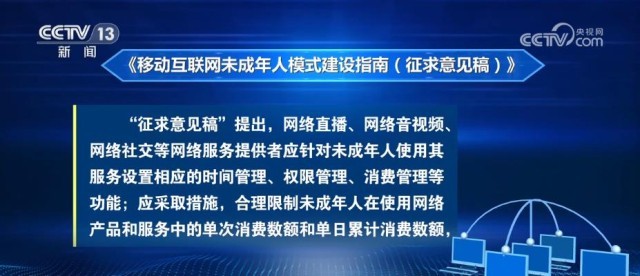 “征求意见稿”提出,网络直播、网络音视频、网络社交等网络服务提供者应针对未成年人使用其服务设置相应的时间管理、权限管理、消费管理等功能;应采取措施,合理限制未成年人在使用网络产品和服务中的单次消费数额和单日累计消费数额,不得向未成年人提供与其民事行为能力不符的付费服务;未成年人模式下不得设置以应援集资、投票打榜、刷量控评等为主题的网络社区、群组、话题,不得利用泛娱乐化功能和内容诱导未成年人沉迷网络。