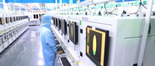 在南昌的这家专门制造硅衬底LED芯片的企业生产车间里,工作人员正在对硅衬底LED芯片进行测试。