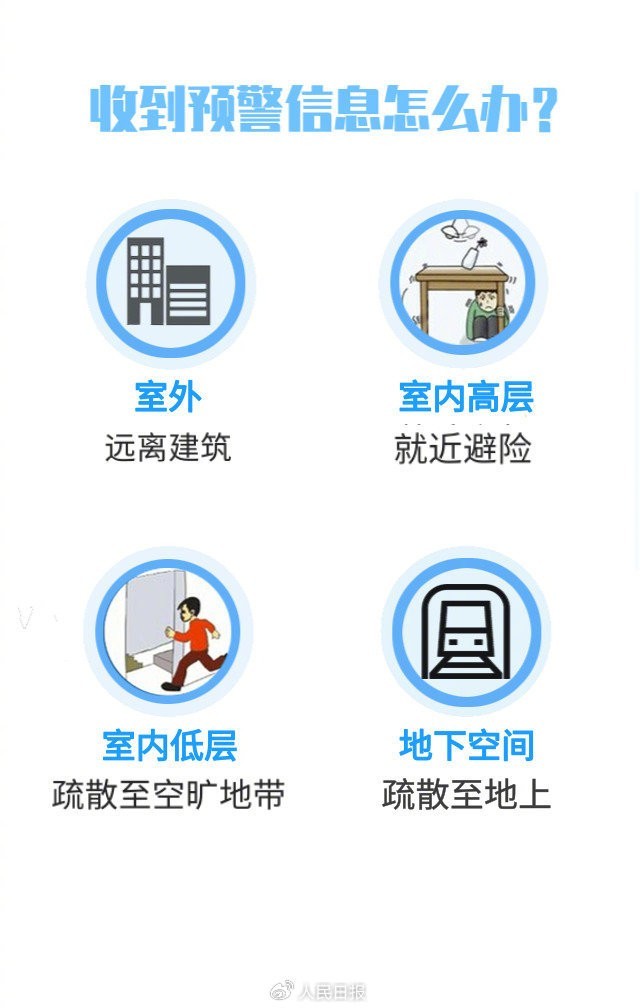 注意,地震预警并不是地震预报,而是警报。收到预警信息,表明已经地震了。它指的是在地震发生后,迅速向破坏性地震波尚未到达区域发出避险警报,一般只有几秒至几十秒,主要是为了一些特殊行业、公众争取紧急处置、避难逃生时间。不过,地震预警也有局限性。越接近震中的地区预警时间越短。收到以后,广大市民一定要保持沉着冷静,通过图片、灯光报警、声音报警、语音提示等,正确辨识地震预警信息,结合所处的环境采取相应的避险措施。