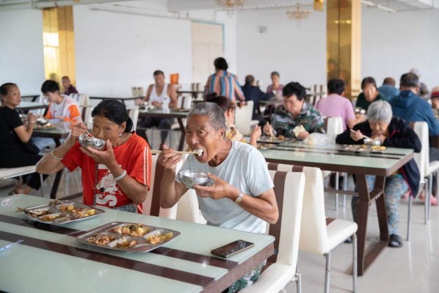 8月12日,在延寿县综合性社会福利中心安置点,群众正在用餐。新华社记者 张涛 摄