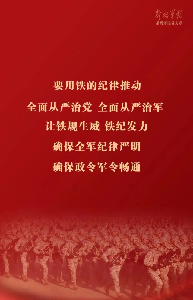 纪律是管党治党的“戒尺”,也是党员、干部约束自身行为的标准和遵循。要用铁的纪律推动全面从严治党、全面从严治军,让铁规生威、铁纪发力,确保全军纪律严明,确保政令军令畅通。严明党的政治纪律和政治规矩,始终做政治上的明白人、老实人,决不当两面派、做两面人。把纪律和规矩挺在前面,运用监督执纪“四种形态”,在用好第一种形态上下功夫,惩前毖后、治病救人。深入开展纪律教育,强化监督执纪问责,使铁的纪律转化为党员、干部的日常习惯和自觉遵循。